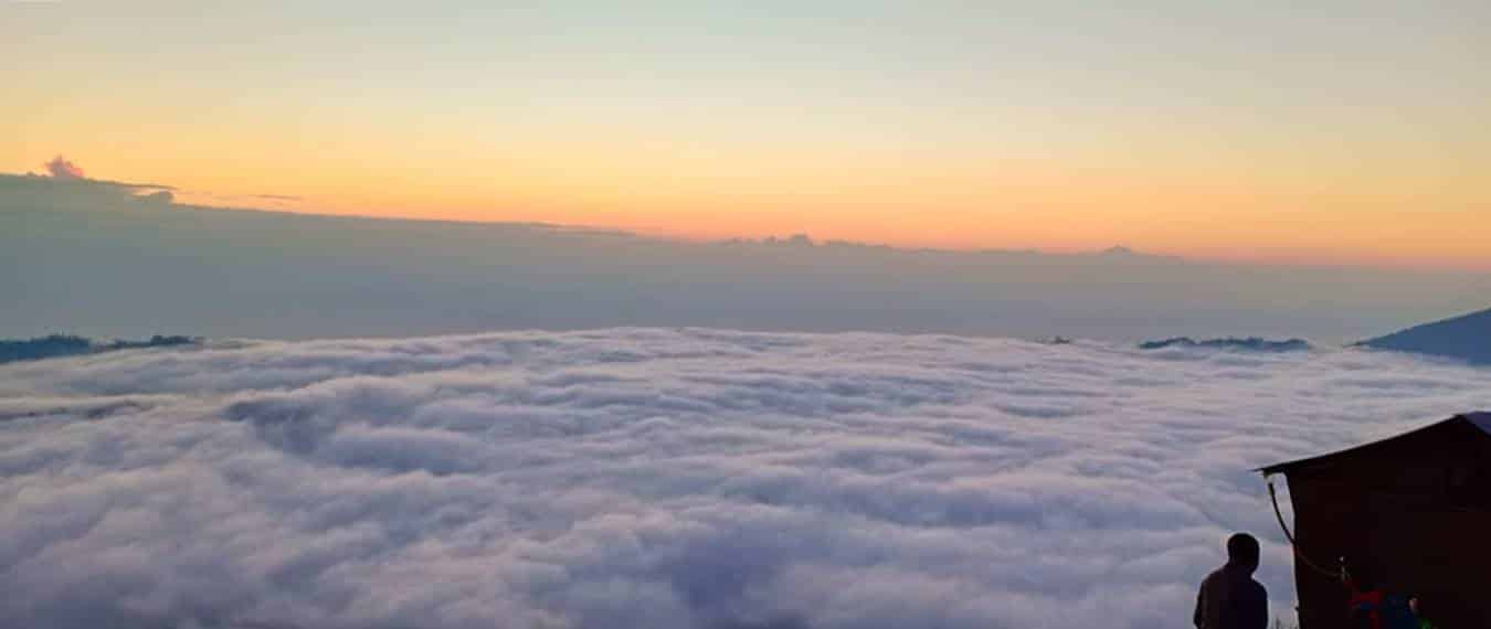 The trekking itself will be started really early in the morning around 03.30 am. After that, you will climb this mountain for about 2 hours long and reach its peak. At that peak, you just need to wait until the sunrise comes while having some relax. When the sunrise slowly appears, you will be amazed by its beauty. The red and orange shine will appear and it is combined with the cloud overlay scenery. In addition, the green surround nature will make this sunrise moment is more amazing.